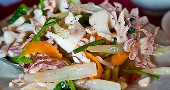 Sunomono.Cucumber salad topped with octopus & shrimp. 200g